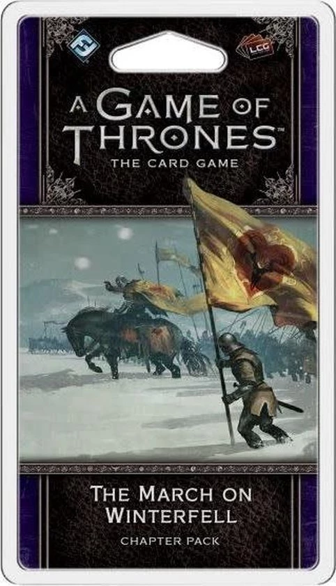 Prepare your armies for the long nights of winter with The March on Winterfell, the second Chapter Pack in theDance of Shadowscycle for A Game of Thrones: The Card Game!This Chapter Pack draws from the pages of A Dance with Dragons, and features more of the new Shadow mechanism that debuts in this cycle. With new cards to draw out your enemy’s plans, you can safely wait in the wings until your moment to strike! But what will you sacrifice in pursuit of power?