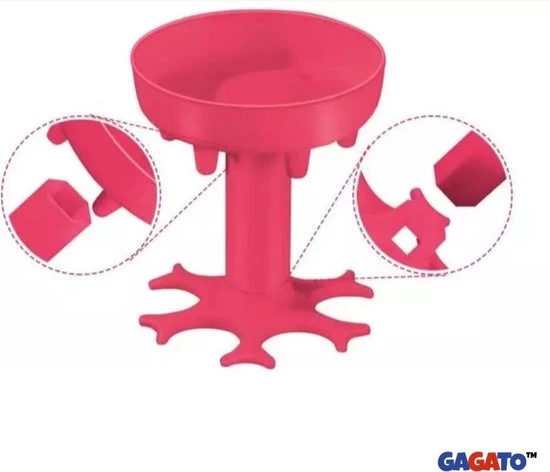 De Shot Dispenser bestaat uit 4 losse onderdelen die je gemakkelijk in elkaar zet. Wanneer je de Shot Dispenser in elkaar hebt gezet plaats je drie tot zes shotglazen in de dispenser. De gaten die je niet gebruikt, sluit je met de speciale leak-plugs af. Dan pak je je favoriete drank (tequila, rum, gold strike?) erbij en giet je deze in de fontein bovenin de dispenser. Zo vul je alle glazen tegelijk. Proost!