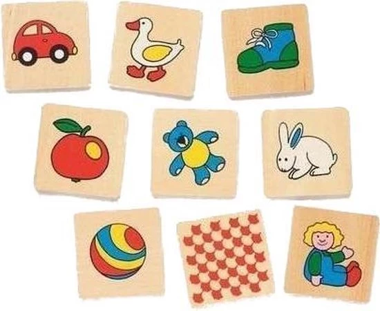 Leuke 16-delige Geheugenspel set in houten opbergdoos. Met 8 setjes houten Geheugenspel steentjes.