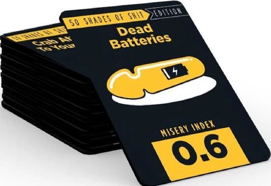 Het leven valt niet mee! Shit Happens 50 Shades of Shit is een hilarisch en weerzinwekkend, maar levensecht partyspel. Je komt allerlei ongewenste situaties tegen die je moet rangschikken op jouw lane of pain. Die loopt van 1 tot 100. Wat is volgens jou erger? Te strak ondergoed dragen of een gigantische zuigvlek in je nek hebben? Verzamel 10 ellendige kaarten en win het spel!