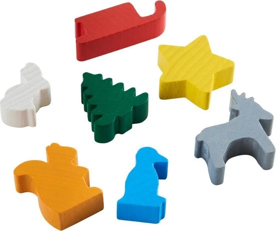 Inhoud: 1 besneeuwd bergpanorama, 4 dennenbomen, 4 slee?n, 4 elanden, 4 pingu?ns, 4 sneeuwhazen, 4 eekhoorntjes, 4 sterren, 1 dobbelsteen, 1 spelhandleiding