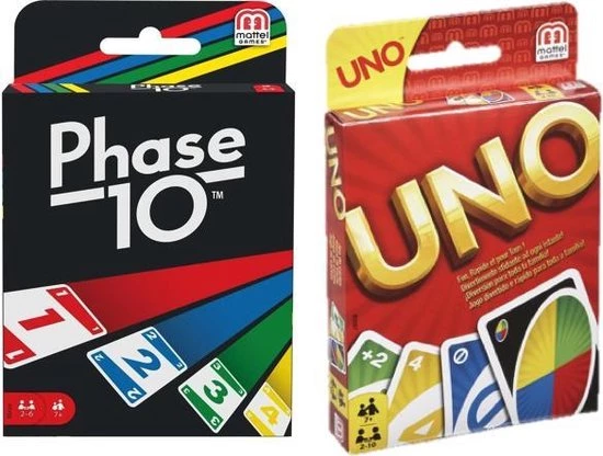 - Inhoud: 1x Phase 10 kaartspel en 1x Uno kaartspel