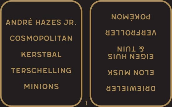 LET OP: om het vouwdoosje zit geen cellofaan maar de kaartset erin zit wel in cellofaan en er bestaan andere versies van het spel ‘Omschrijven & Raden’ bedoeld voor de Kerstpakkettenmarkt (‘Press Pause’ artikelnummer 6169 / ‘Driving Home’ artikelnummer 6230 / ‘CMPLMNT’ artikelnummer 6254 / ‘Teamwork’ artikelnummer 6278 / ‘Road Trip’ artikelnummer 6461 / ‘Today’ artikelnummer 7226 / ‘Text Collection’ artikelnummer 7625 / ‘Taste Collection’ artikelnummer 7490 / ‘Norden’ artikelnummer 8158 / ‘Winter Moments’ artikelnummer 8261 / ‘With Compliments’ artikelnummer 8219) die reeds zeer succesvol zijn verkocht. Die versies hebben een ander vouwdoosje maar bevatten dezelfde kaartset. Neem contact op voor een maatversie van dit product die al tegen een zeer laag bedrag geleverd kan worden!