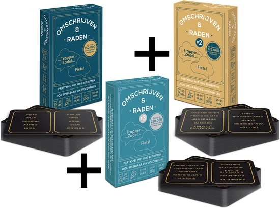 Deze hilarische pocketformaat (brievenbuspost!) raadspellen – #2 en #3 zijn aanvulsets / uitbreidingen op ‘Omschrijven & Raden #1’ maar zijn ook spellen op zich – bevatten allemaal 55 kaartjes (1 spelregelkaart en 54 kaartjes met totaal 1080! begrippen). LET OP: GEEN ZANDLOPER INBEGREPEN dus gebruik een timer (op een telefoon). In deze partyspellen, die in iedere zak passen en ook via videobellen gespeeld kunnen worden, strijden teams van 2 of meer spelers tegen elkaar! E?n teamlid omschrijft binnen 30 seconden zoveel mogelijk van 5 begrippen op een kaartje, terwijl de andere teamleden raden. Dit raadspel werkt eigenlijk precies hetzelfde als andere omschrijf- & raadspellen. Maar er is een twist; hoe minder woorden worden gebruikt om iets te omschrijven, des te meer punten er te verdienen vallen (een begrip omschrijven met 5 woorden = 1 punt / met 4 woorden = 2 punten / met 3 woorden = 3 punten / met 2 woorden = 4 punten en met 1 woord = maar liefst 5 punten)! De vraag is natuurlijk of het dan wel geraden wordt ? en de grap is dat de omschrijvende speler al voordat de begrippen zichtbaar zijn, moet aangeven met maximaal hoeveel woorden een begrip omschreven gaat worden! Door slim gebruik te maken van het materiaal staan op ieder opgavekaartje 4x 5 begrippen. De 1080 opgaven per editie (totaal dus 3240! opgaven) zijn zeer divers; bekende personen, plaatsen, programma ?s en gebruiksvoorwerpen. Onder de tijdsdruk ga je de meest vreemde woorden gebruiken. Dat wordt lachen gieren brullen. Veel speelplezier gewenst!