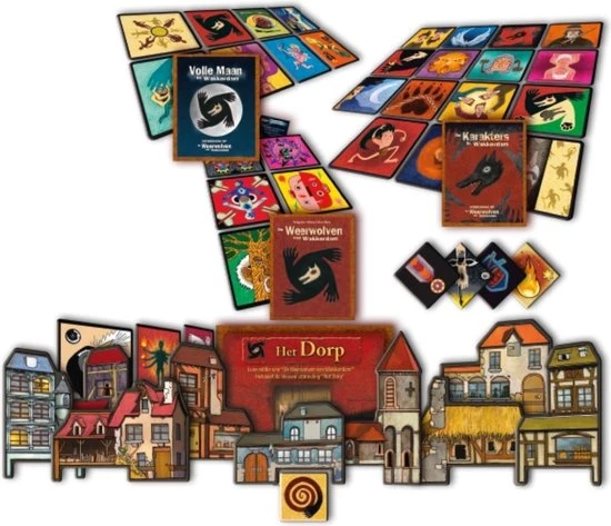 Compleet Weerwolvenpakket voor liefst 47 spelers! Met deze doos haal je in ??n keer alles in huis wat je nodig hebt om De Weerwolven van Wakkerdam met maar liefst 47 personen te kunnen spelen. Naast het basisspel bevat Het Pact de uitbreidingen Volle Maan, Karakters en Het Dorp. Met Weerwolven: Het Pact hoef je je nooit meer af te vragen wat je met een grote groep kunt spelen. Burgers, weerwolven, kwaadaardige en extreem goede karakters, beroepen, gebouwen, alles zit erin om de spannende strijd tussen de burgers en de weerwolven nog onvergetelijker te maken. De verschillende varianten zorgen ervoor dat geen spel hetzelfde is. Weerwolven: Het Pact garandeert vele avonden interactief speelplezier!