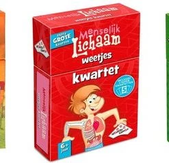 Menselijk Lichaam Kwartet Kwartet is het leukste kaartspel voor de hele familie. Op de kaarten staan de mooiste plaatjes en leukste weetjes. Hoe komt het bijvoorbeeld dat je moet plassen wanneer je water hoort? Inhoud 38 extra grote, gelamineerde speelkaarten+ spelregels. Speelduur 20 min. Aantal spelers 2-4. Leeftijd 6+.
