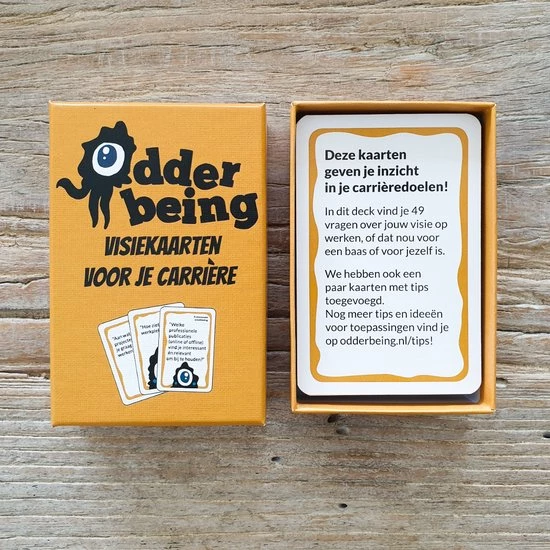 Met deze kaarten ontdek je de baan die ?cht goed bij je past. In 49 vragen breng je onder andere in kaart (ha-ha) van welk werk jij energie krijgt, bij welke bedrijven je het meest tot je recht komt en met wie je graag samenwerkt. Kortom – je ontdekt welk werk past bij jouw unieke behoeften en voorkeuren.
