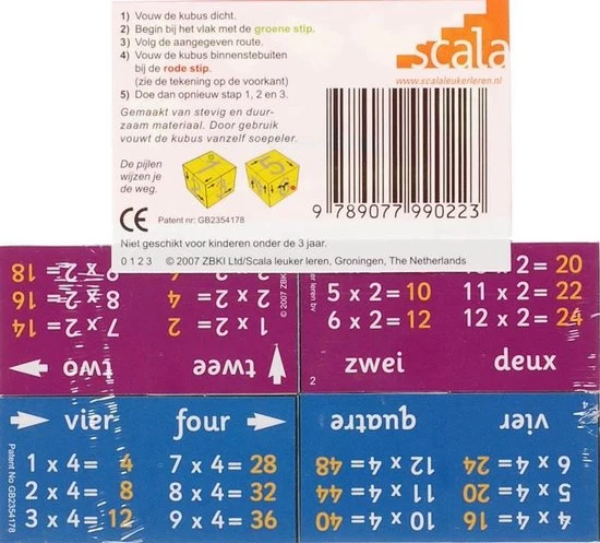 Leer het rekenen nu nog simpeler met het Kubusboek Tafels van 1 tot 12. Op deze manier leert uw kind de tafels kennen en zal het rekenen alleen maar makkelijker gaan.Makkelijk mee te nemen of gewoon voor thuis.Het ZooBooKoo kubusboek is een boek, puzzel en spelletje in ??n! Op een speelse manier lees je het boek dat verdeelt is over 12 pagina’s. – Vouw de kubus dicht.- Begin bij het vlak met de groene stip. – Volg de aangegeven route.- Vouw de kubus binnenstebuiten – Begin bij de rode stip.- Doe dan opnieuw stap 1, 2 en 3.Dit leerzame speelgoed is ontwikkeld voor kinderen om kinderen een combinatie te bieden van spelen en leren.Het Kubusboek is stevig en gemaakt van duurzame materialen. Het vouwen van de kubus zal naar mate het gebruiken steeds soepeler gaan. 7+