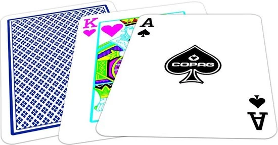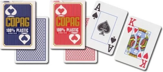 | Verpakkingsinhoud | Bevat, 1, deck, Copag, Speelkaarten.<br, /><br, />1, Deck, bevat:<br, />-52, speelkaarten, (K, Q, J)<br, />-2, jokers<br, />-1, fabrieksgarantiekaart |