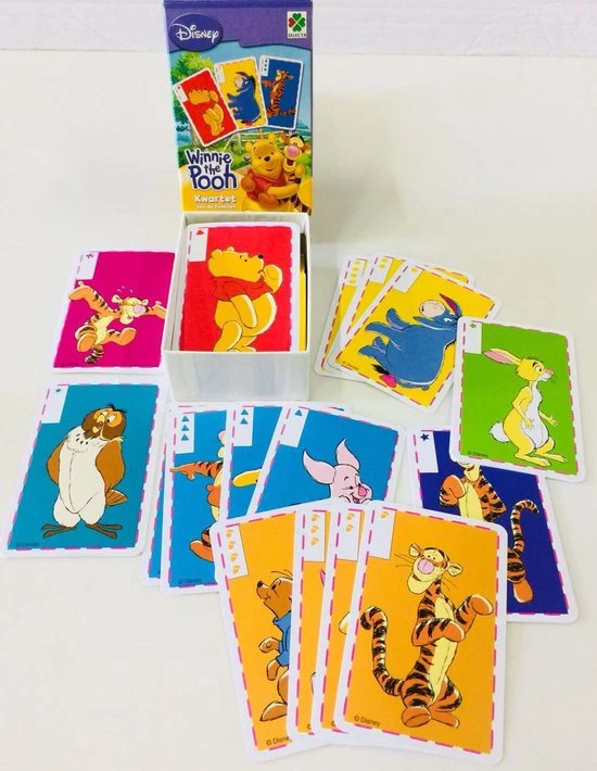 Het klassieke kwartetspel omgegoten in een Winnie The Pooh versie. Dit leuke en kleurrijke spel is voorzien van afbeeldingen van de verschillende personages. Het kwartet bestaat enkel en alleen uit plaatjes, waardoor zelfs kinderen die nog niet kunnen lezen ook mee kunnen spelen.