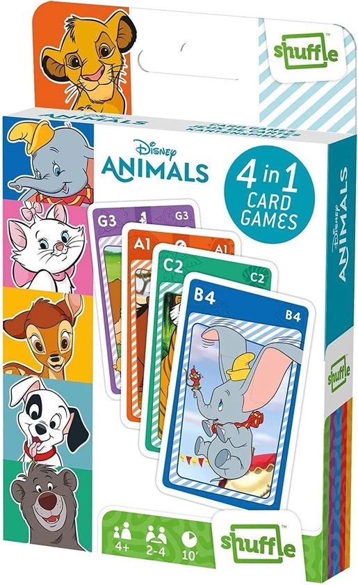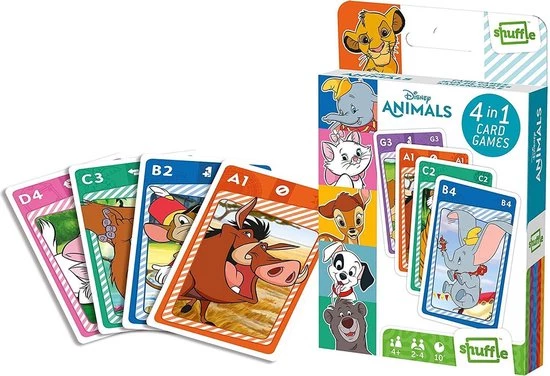 Met dit kaartspel kun je maar liefst vier verschillende spellen spelen. Op de kaarten staan jouw favoriete Disney dieren om het spel nog leuker te maken! Bij de verpakking zit een handleiding waarop de vier spellen worden uitgelegd.