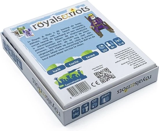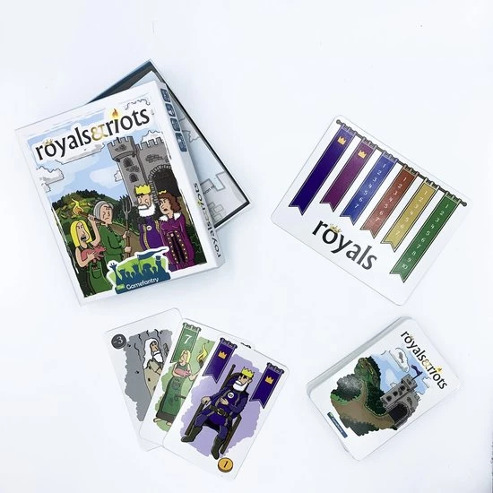In Royals en Riots is de koning de baas. Althans, nog wel. Er heerst armoede, onrust neemt de overhand en een opstand is aanstaande. Alleen de charismatische prinsen kunnen een revolutie in de kiem smoren, tenmisnte, als ze nog niet zijn uitgespeeld. Hark op sluwe wijze je punten binnen. Maar wees voorzichtig! De dief en de beul staan klaar om toe te slaan.