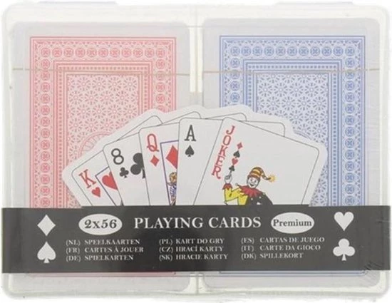 Speelkaarten Premium 2 X 56 Cards Rood Blauw Incl. Bewaardoos