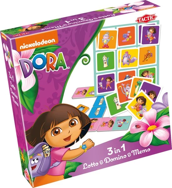 In deze doos vindt je 3 klassieke spellen: Lotto, Domino en Memo.
