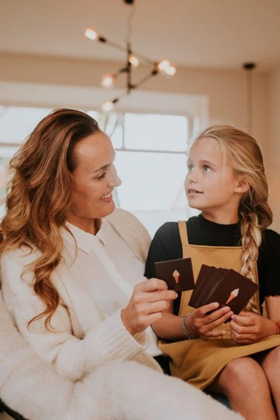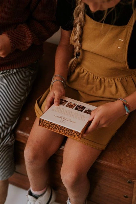 Een doosje vol met schatten en magie, deze kaarten zijn magische sleutels die nieuwe deurtjes in kinderen kunnen openen. Reis een stukje mee in de wondere wereld van kinderen, waarin ze zelf hun eigen schatten mogen ontdekken. Creativiteit, fantasie, dromen en verlangens worden aangewakkerd waardoor de kunst van het manifesteren op jonge leeftijd geleerd mag worden. Op elke kaart staat een vraag. Trek elke dag een kaartje met je kinderen tijdens het eten of na school. Wat een mooie dierbare gesprekken zullen er ontstaan.