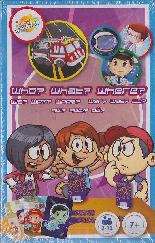 Wie? Wat? Waar? is een leuk raadspel die je laat uitvolgen wie jouw tegenstanders zijn, wat ze doen, en waar ze zijn. Geschikt voor 2 tot 12 personen